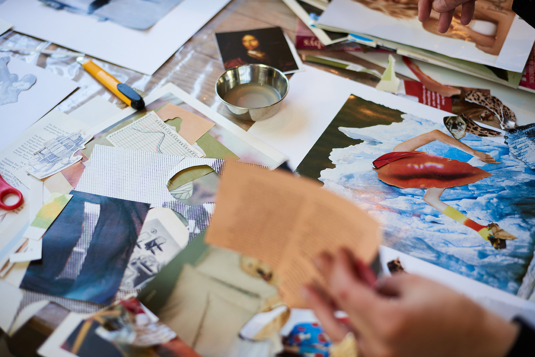 SK Freie Szene is a network for costume, scenography, and visual arts in the independent performing arts. They invited me to lead a creative workshop during one of their symposia. The workshop was designed as an open space — free from briefs, expectations, or the need to solve anything. Instead, it was about curiosity, intuition, and playful experimentation. Using collage as a starting point, participants explored composition, white space, and the joy of filling a surface completely. The results were diverse, bold, and deeply personal — a beautiful reflection of creative freedom in action.